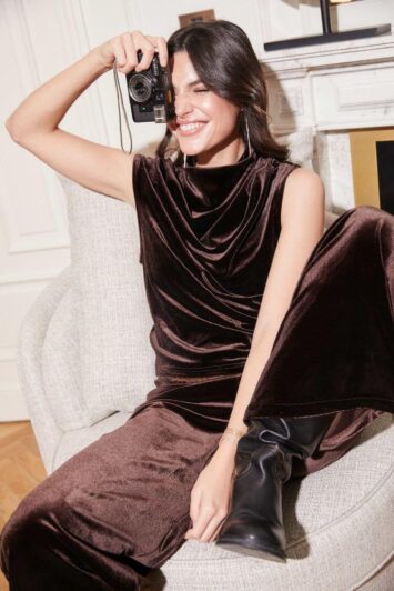 La paleta festiva de esta colección se mueve entre profundidades y destellos. Todo está pensado para que la luz haga su trabajo: revelar brillos, suavizar texturas y transformar cada look según el momento.