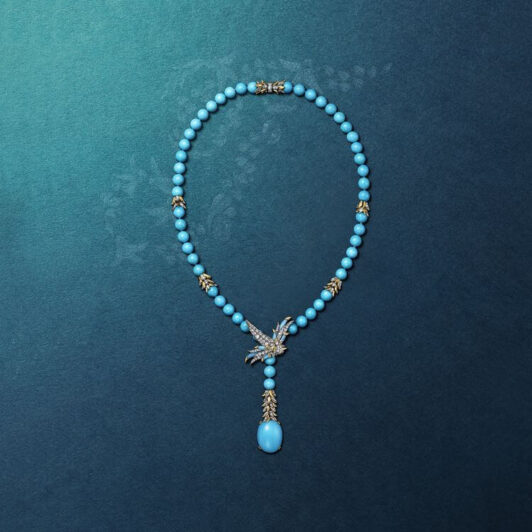 El detalle abstracto «Wings» captura la esencia del vuelo con formas esculpidas y simbólicas que encarnan el movimiento elegante y las complejas capas que se encuentran en el plumaje de los pájaros. Las dos nuevas colecciones de alta joyería rinden homenaje a la rica herencia de piedras preciosas de Tiffany & Co., una basada en la tanzanita y otra en la turquesa.